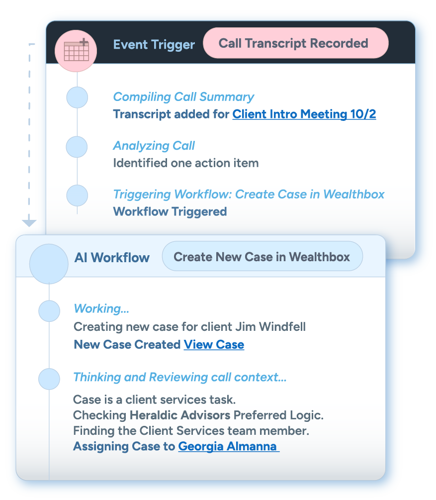 Agentic workflows allow AI systems to operate across tools, data sources, and processes with clear goals and human oversight. Instead of isolated automations, these workflows coordinate tasks like note-taking, CRM updates, client communications, and internal reporting as part of a unified system.
